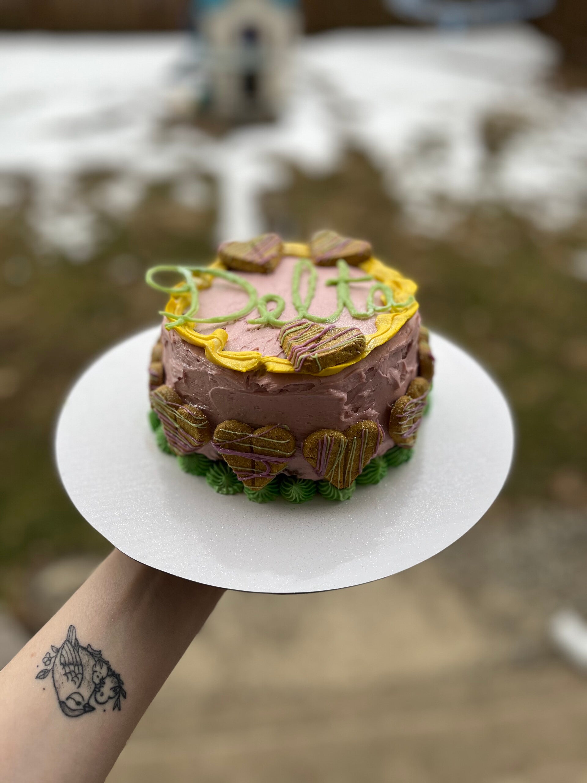 What makes our dog cakes truly special? They're decorated with the same care and artistry as our human cakes! Perfect for dog birthdays, "gotcha-days," or any special occasion, these beautiful creations are sure to be the star of your pup's party, making every moment picture-perfect.